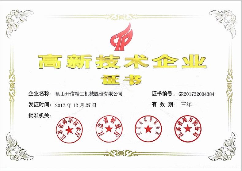 公司于近日收到江蘇省科學技術廳、江蘇省財政廳、江蘇省國家稅務局、江蘇省地方稅務局聯(lián)合頒發(fā)的《高新技術企業(yè)》證書(證書編號:GR201732004384)。發(fā)證時間:2017年12月27日。本次高新技術企業(yè)的認定,是在原證書有效期滿后進行重新認定的。公司通過高新技術企業(yè)復審后,自2017年起將連續(xù)三年繼續(xù)享受國家高新技術企業(yè)的優(yōu)惠政策。