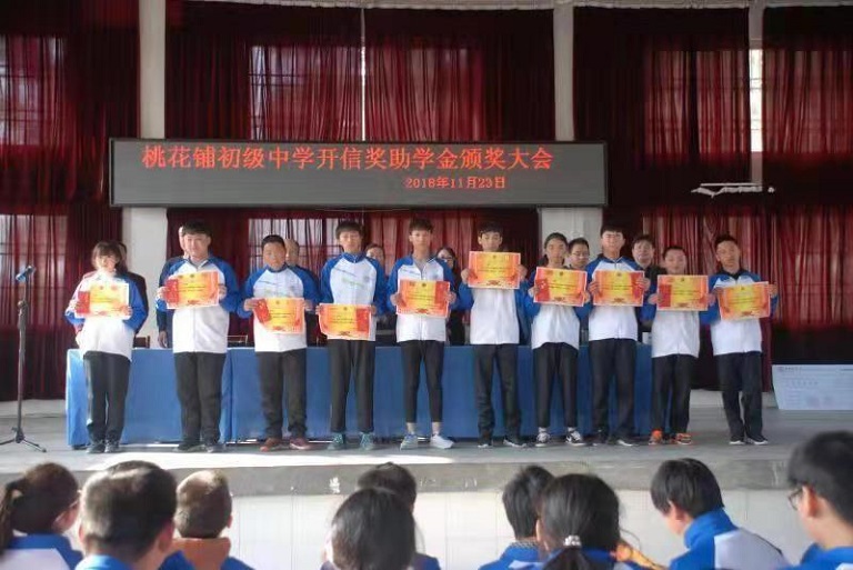 2018年11月23日桃花鋪初級中學在校禮堂隆重舉行了“開信獎助學金”捐贈儀式及頒獎大會,由桃花鋪初級中學副校長李傳友主持,昆山開信精工機械股份有限公司常務副總經(jīng)理秦丹鳳女士、潛山市教育局副局長李蔥苗、辦公室副主任汪海全、黃鋪鎮(zhèn)副鎮(zhèn)長汪云霞等出席了此次大會。